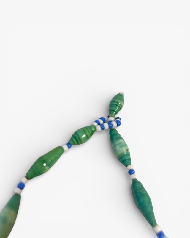 ペーパービーズで作られた可愛らしい色と形のネックレスで、