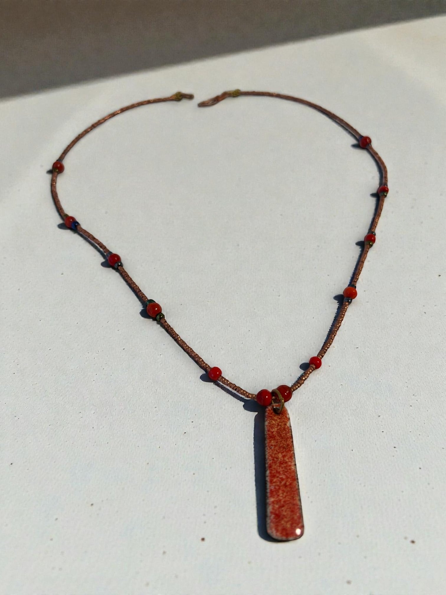 朱色のチャーム・ネックレスは、あなたの日常に彩りを添える一品です。