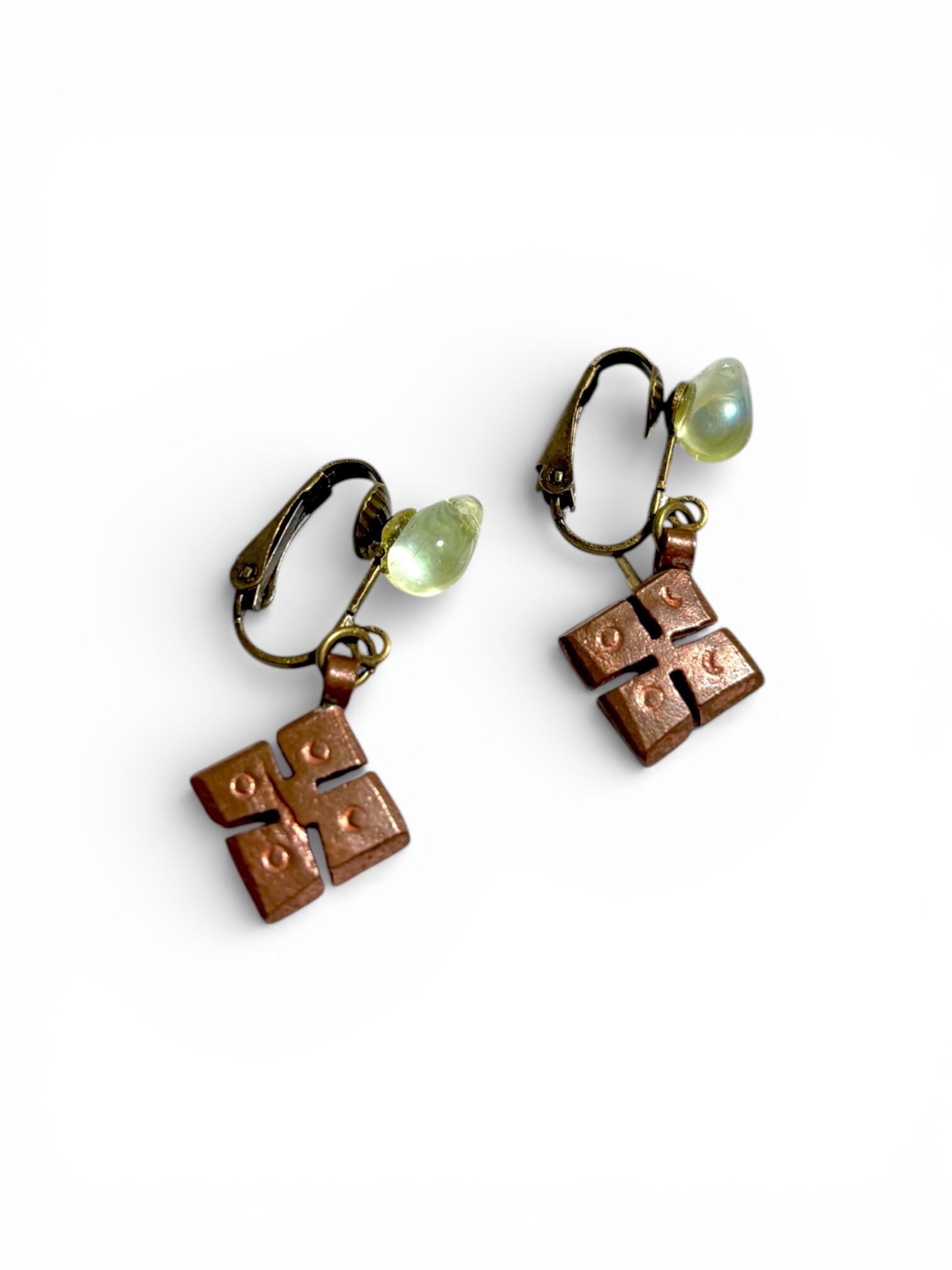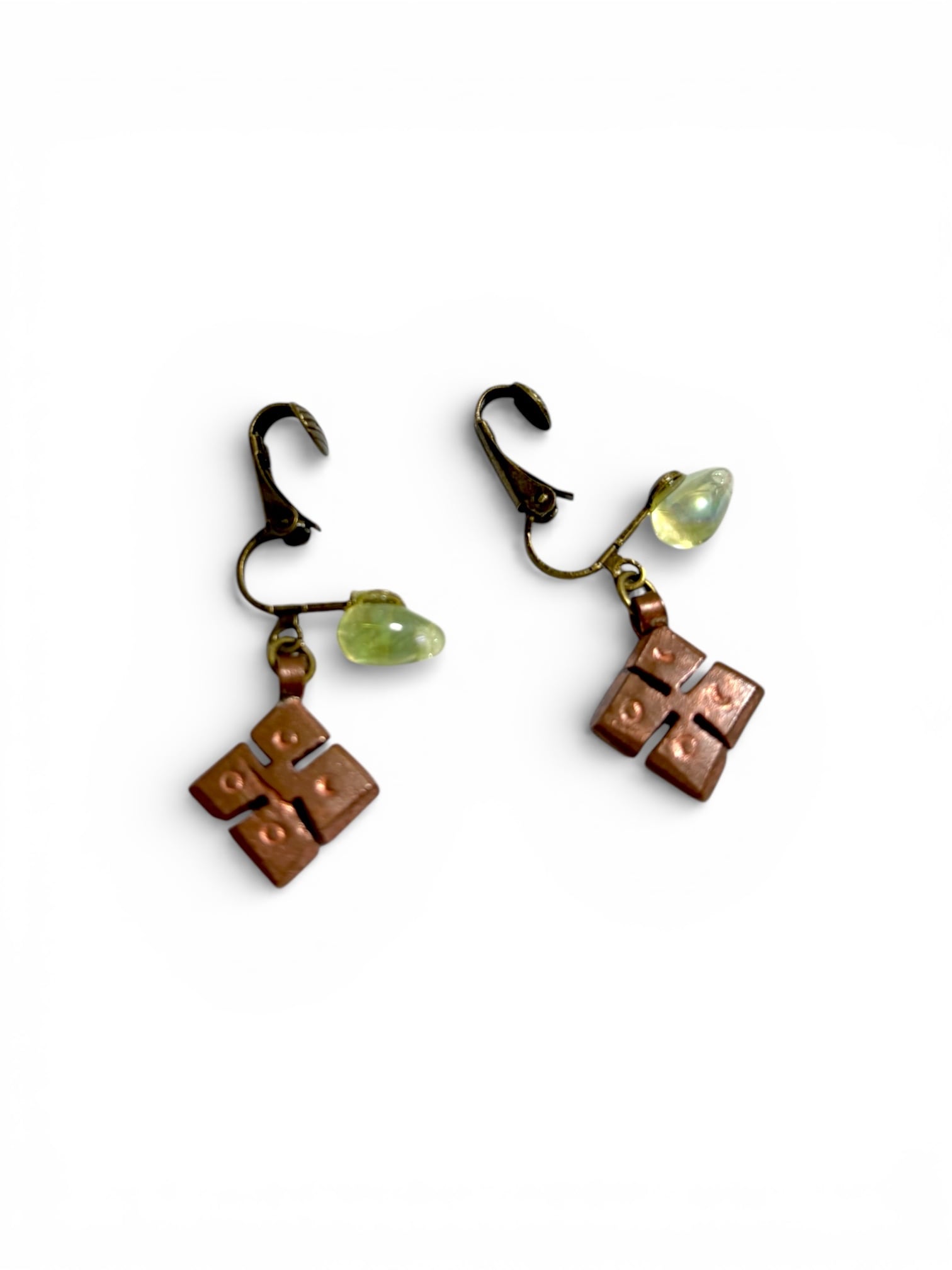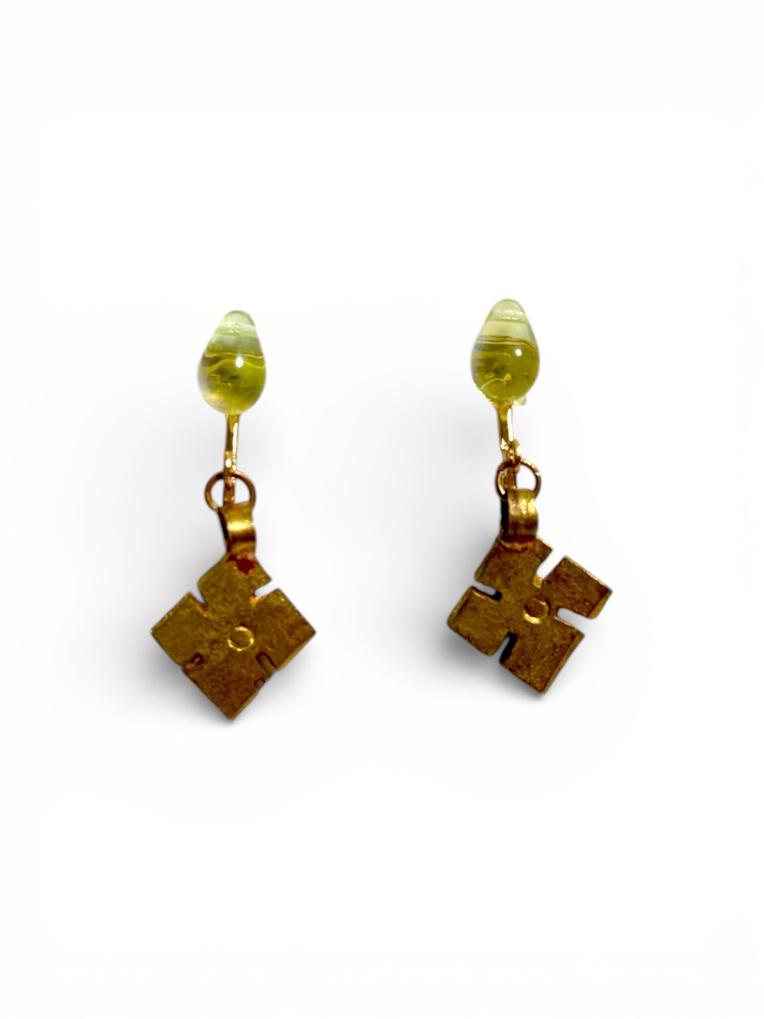 クリスタルライムグリーンのドロップビーズとエチオピアンクロスのイヤリング