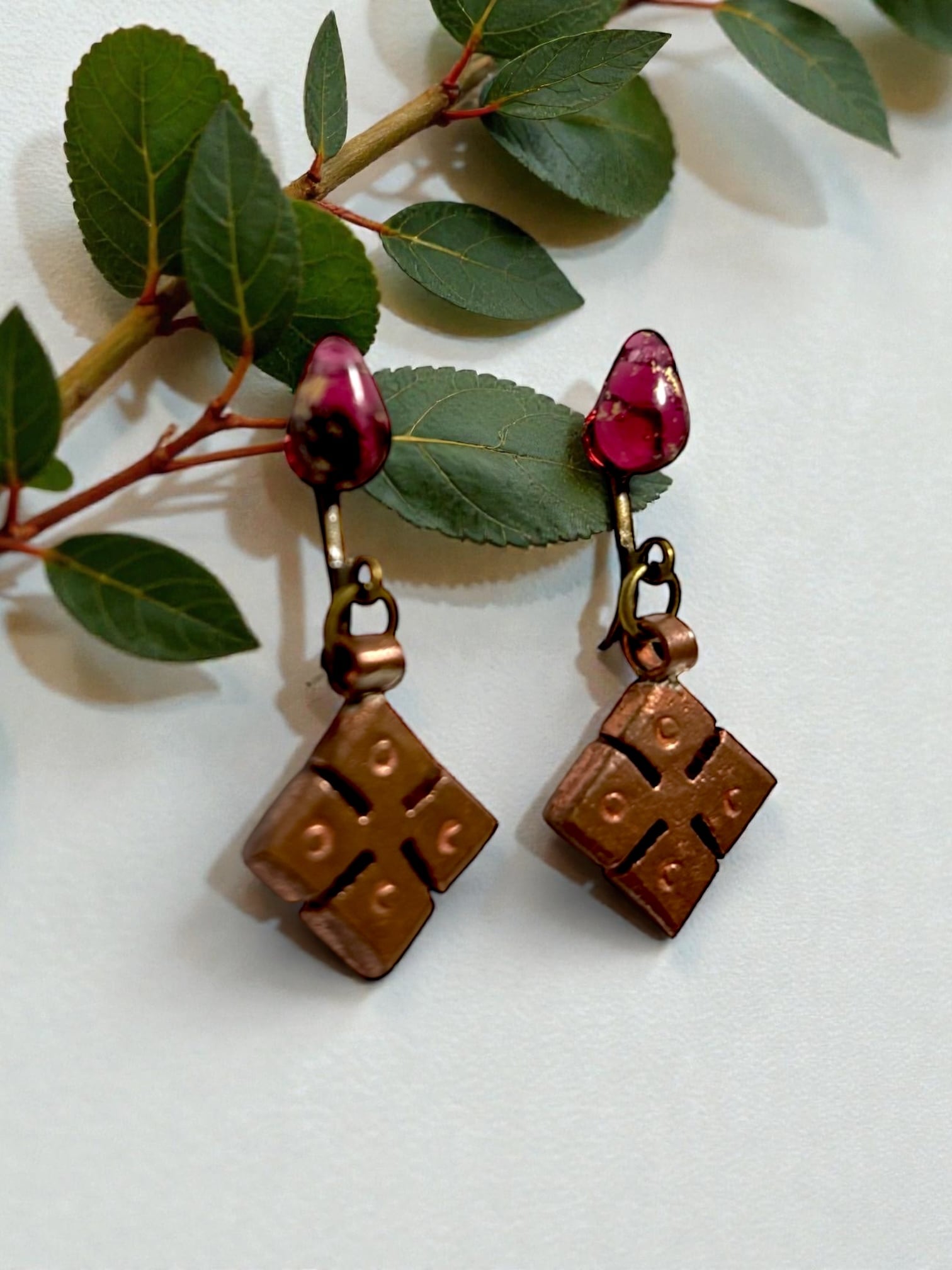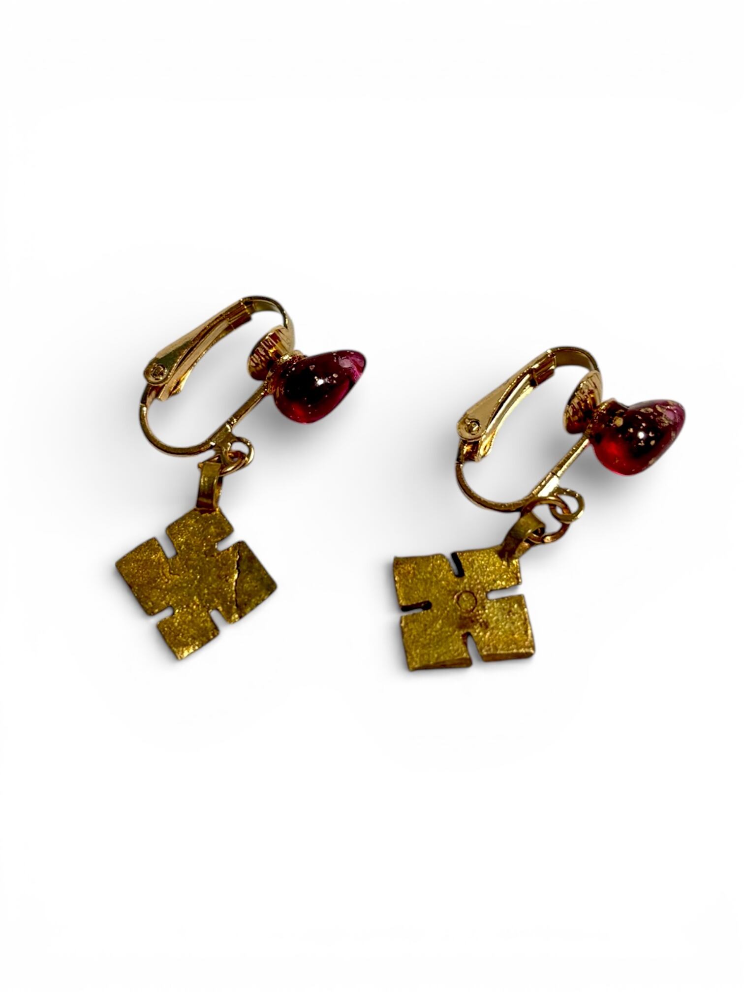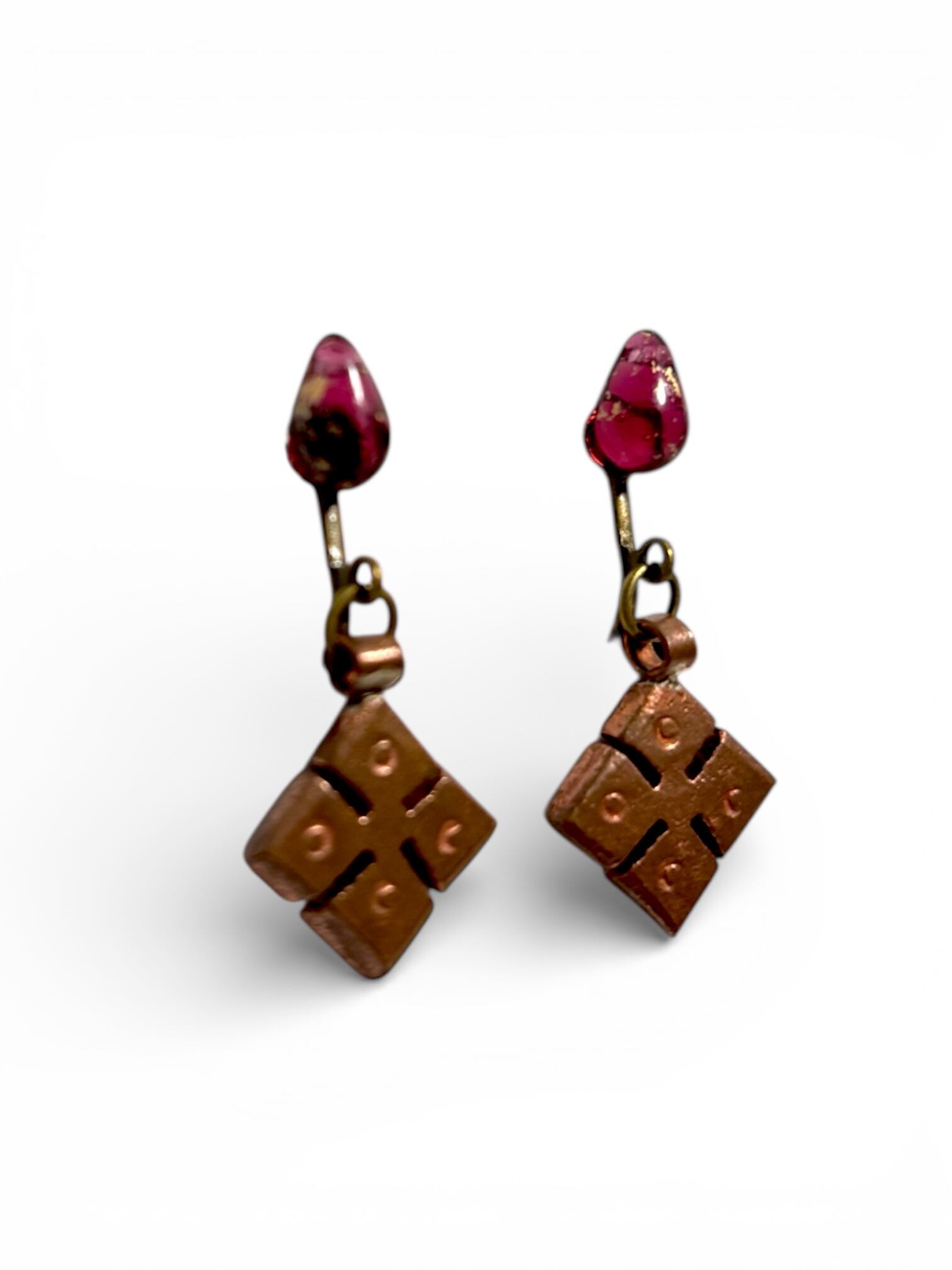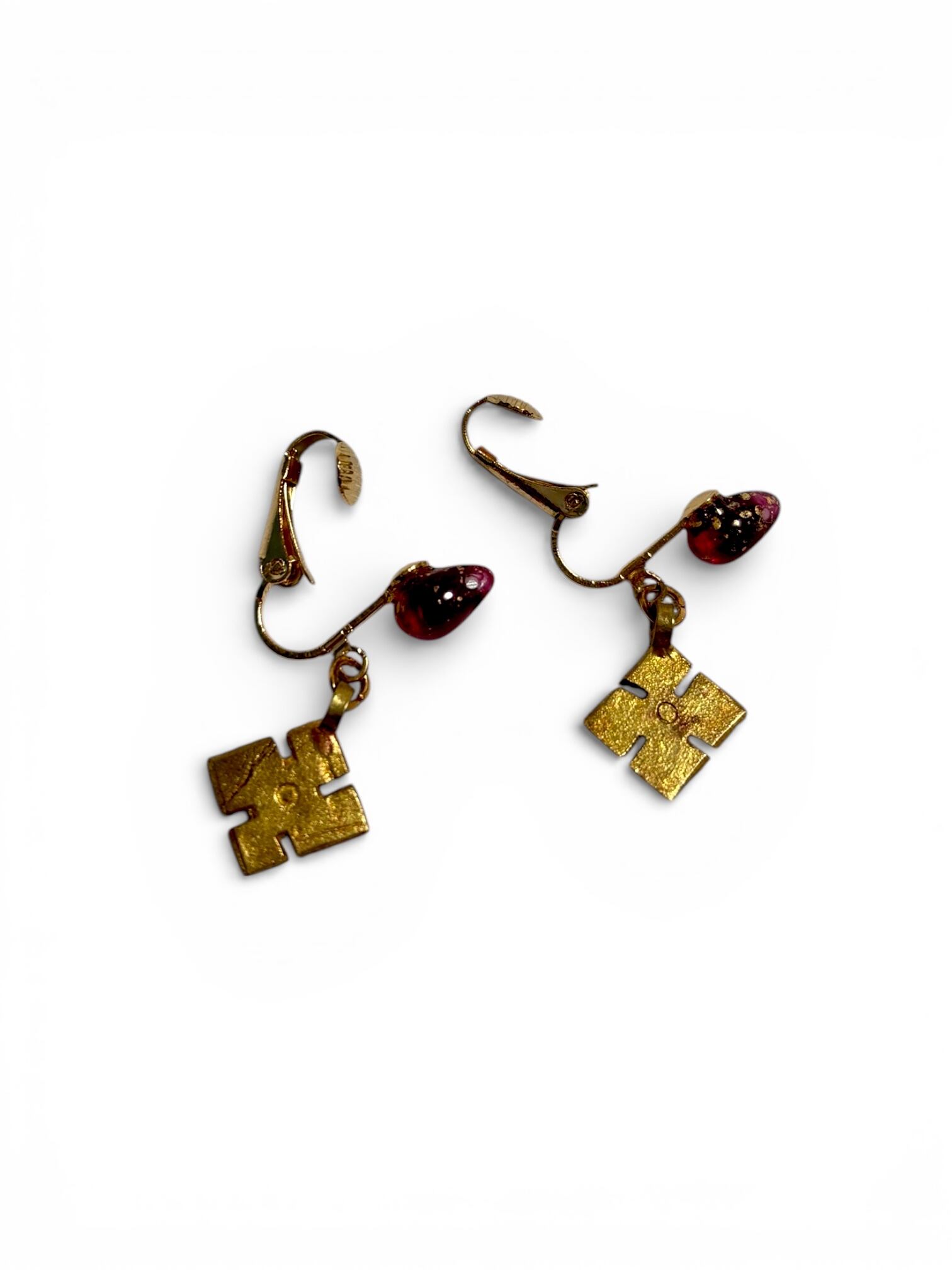 コチニールレッド(Cochineal Red)のドロップビーズとエチオピアンクロスのイヤリング