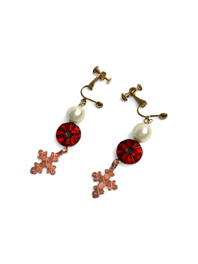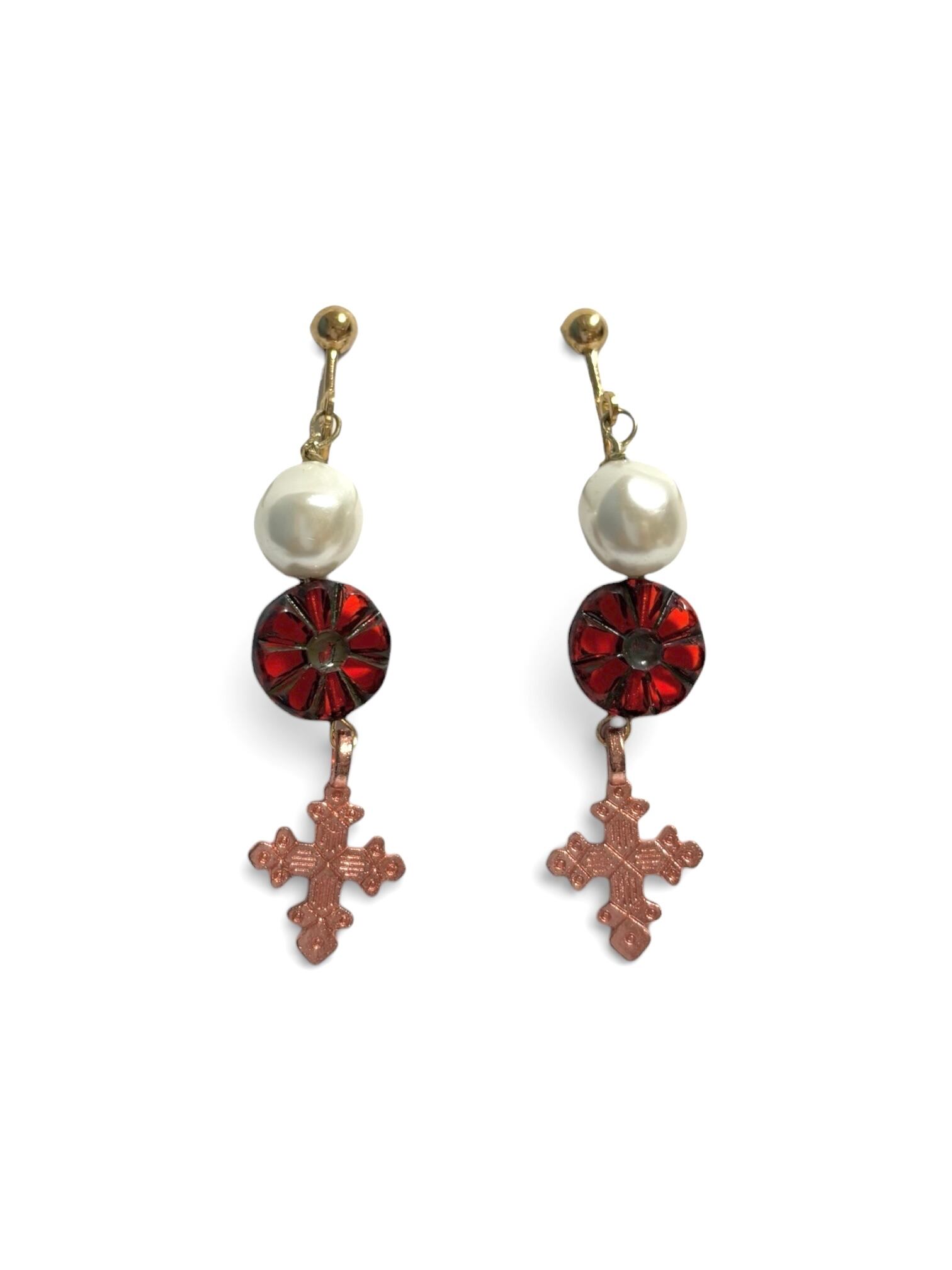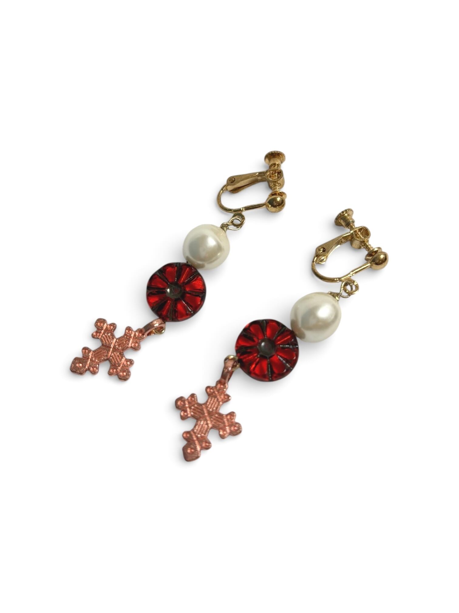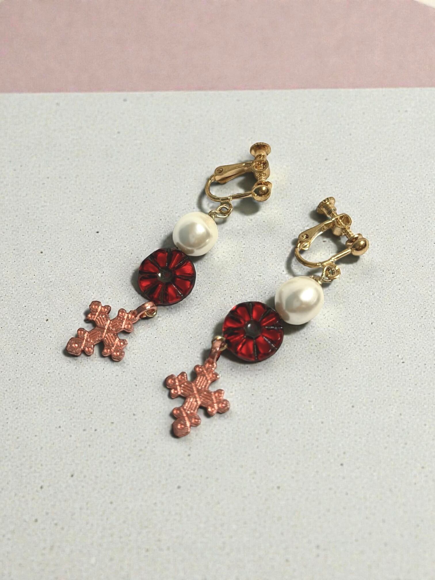 ワインレッドのチェコビーズとクロスのイヤリングで個性的なスタイルをお楽しみください。
